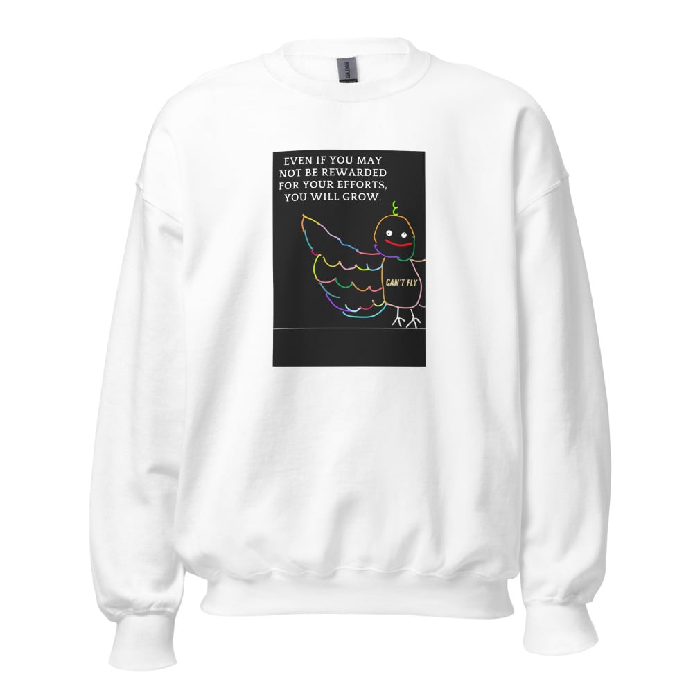 だけどこの鳥は、鳥にとっては当たり前のことができないけど堂々としていて、飛ぼうと努力している。たとえ飛べなくても、「努力」が成長させてくれる。何事にも挑戦し、学び、